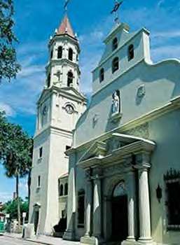 One of the longest series of historical events occurred in the oldest Catholic Parishes in North America. As you know now and then we have investigated quite a few Cathedrals & Churches but none such as old as The Basilica Cathedral Of St. Augustine which was started in the year 1565. Ponce Deleon a Spanish explorer was the first to set foot here. What turned into wealth and power eventually became a crusade to spread Catholicism amongst the various Indian tribes throughout the coastlines of Florida. But like most churches the history is usually about religion but this church was not started on the belief in Christ but rather it was about a war. A war that was about who would secure Florida first between the French and The Spanish. This was a time when pirates rules over the seas and battles were fought between the Indians when explorers landed on Florida's ancient shores and ships battled using cannon fire. At the time in 1565 when Kings rules the nations in Europe a man by the name Don Pedro Menendez De Aviles was given the position of a Captain of a great Spanish Fleet. The king wanted Florida to be of Spanish Rule. At the time the French were in Florida Waters commanded by a famous Sea Captain Jean Ribault. Menendez was sent on a quest to prevent this so he was given a missionary and military duty. He sailed out in 1565 from port Cadiz with 19 ships and over 1,100 men but deadly storms forced them to turn back. Then days later he tried again with over 1,500 soldiers, artisans, farmers, women, and even children. On board the fleet was four priest Francisco López de Mendoza Grajales, Rodrigo García de Trujillo, and Pedro de Rueda the other name is not known. Eventually they made it to Puerto Rico to stock up on supplies then they set off on a quest to Florida. When they were setting off they wanted to establish a settlement around Cape Canaveral that is where they sited land on the Feast Of St. Augustine Of Hippo. There was an engagement with four French Warships. However there was no losses on either site. However this is what the Catholic Church tells you but further research tells another sinister story that the crew of Menendez slaughtered the French in the Bay Of St. Augustine for their own taking including Fort Caroline which is up to the north. So history proves that the battle that took place their were many losses perhaps not for Menendez but the French who were beached in the St. Augustine Bay due to hurricanes were captured and killed. Menendez withdrew and they established there settlement further north on the Matanzas River also known as the River Of Dolphins. He anchored his ships near the Indian Village of Seloy and named the area St. Augustine after the day he sighted his first land in Florida on the feast day of this saint. He claims that a comet guided him to the Florida coast as it was traveling westward. When they reached landfall artillery sounded off and trumpets. The crew had gone ashore singing the hymn "Te Deum Laudamus" carrying a cross. They all knelt down and kissed it. The Indians watched from afar and even imitated the explorers. A site near the church marks where Don Pedro landed and his Chaplain performed the first Catholic service in North America. From that time on the parish began to grow as the church was constructed. It did not become a cathedral till a later time. But over the years the church had been rebuilt many times as Queen Anne's War and Pirates caused the churches destruction from fire. So many times it burnt down and was rebuilt keeping the classic Spanish Missionary look. Since the wood structure seemed to not hold up a man by the name Henry Flagler a railroad tycoon funded the rebuilding of the church which is the current structure built in 1797. That structure was a Spanish Colonial Renaissance style piece of beauty and then in the 1880s it was reconstructed with a tower added. Not only is