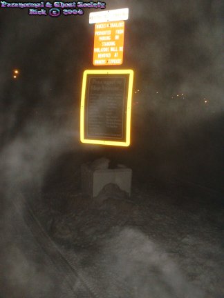 a lot of people that pass it probably never look twice. I had to be careful not to slip into the ice creek below the slop going 20 feet down was all ice with waters below so I stayed near the edge and took my photos around this little park. I did see a little ectoplasm not much I think the road is more haunted the area where years ago the flood struck the hardest. There was a feeling of being watched but it was not constant it was like something would check me out then take off before I could work or connect with it. Then I headed over to a much larger area across the road.