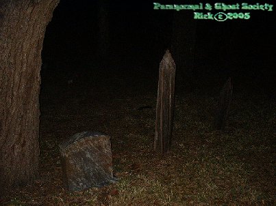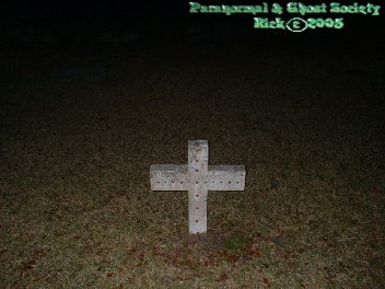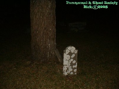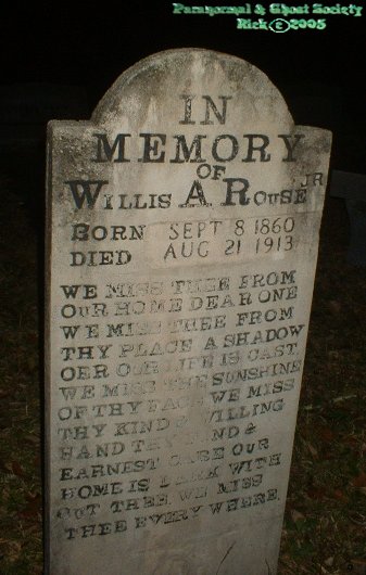 There is a giant stone and it looks fairly new here that says Drawdy Rouse Cemetery it perhaps its a big stand out upon entering the cemeteries gates. It really has a nice warm feeling here I even posed by one of the gravestones as you can see below. Alot of other groups who have done this place say its evil, hostile, dangerous etc etc but in fact I found it to be the opposite. If you want to go to a hostile cemetery visit Goodleburg in NY or Lake Diaz Cemetery out near DeLeon Springs. The point is that it is what it is a small family cemetery on a peaceful road. I guess it just upsets me when you read about how some place is bad because they see an eerie tree or a ghost. Seeing an entity or ghost does not make a place evil; many ghost perhaps try to communicate with us for various reasons and that is what makes a place beautiful is that the entities are very responsive to your investigations. But anyways the legend goes as this that the cemetery and woods are haunted by the ghost of Benjamin Miles who is often seen in his work clothes. They say he is buried in the cemetery and his stone is unmarked an very angry. Some say that after an owl is heard his presence will then appear as a shadowy figure. Some say that his ghost is seen across the street from the cemetery as well. They say that you will feel really chilly as he is nearby. How true this legend is its hard to say this is the type of cemetery I would go alone at and sit down on a stone just talking to various entities. I do not think its the ghost to worry about here but maybe the punks who try to hang out for a thrill here. As you can see from our first investigation here we did not really capture much of anything perhaps because its one of these types of places where the ghost are cautious perhaps because so many visit here. But perhaps a second visit will increase activity here that is the type of place it is where the entities perhaps do not trust others since its a private family cemetery. We do hope in the future to work with it more and bring you some nice Ectoplasmic photos from here eventually. © By Rick-AngelOfThyNight
