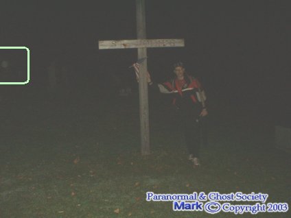Doing so paid off as i did get some decent ectoplasm shots and some beautiful orb photography. Basically what I did is walked the one road that circles around the cemetery roughly 3 times. The older area was extremely cold and I felt something take my hand almost when I asked them to walk with me to the huge wooden cross. Earlier though I felt something run past me and Mark snapped a quick photo and got an apparition so that was a given their as the ghost here seemed to be very touchy unlike most cemeteries we visit.
