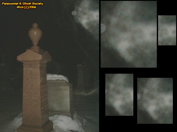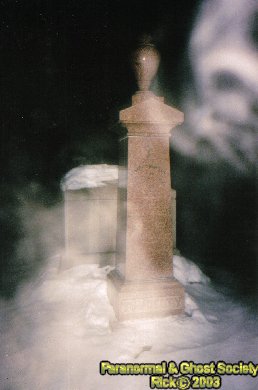 occasion I heard whistling in the cemetery. Also I remember when my flash went off I seen a face with my naked eye that had large eyes it almost did not look human. After a good hike it was time to cross the road and start working on the