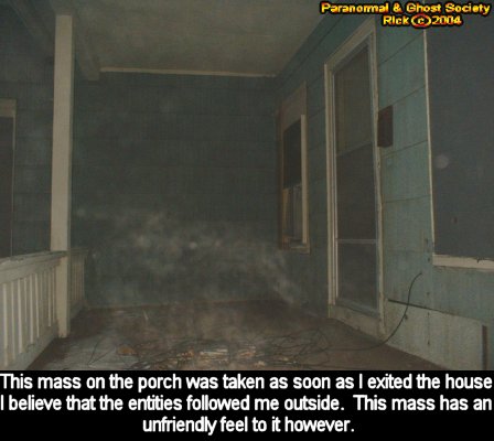 awakened by my entrance. James told me he also seen something fly out of the house and stand behind me. He said it was very mean and evil looking. Watching me for awhile. I did capture some activity outside so this I do not doubt.