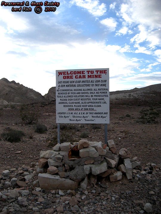 In 2002 Congress designated the Muddy Mountains Wilderness area as a preservation site so that adventurers like me can hike, camp and explore the historic Lovell Canyon. The reason why most of you have not heard much about this place is that it is 48,000 acres of canyons, mountains and a few historic sites such as the Anniversary and Ore Cart Mines. Do not mistaken this area as the Lovell Canyon in the spring mountains this Lovell Canyon is on Lake Mead. I am almost sure that eventually this area may become a state park in itself to help preserve it even further. Our exploration would lead us on an old mining road passing by two mine tunnels off in the distance to a summit where we encountered mill ruins and into a deep wash in the muddy mountains. I would not trade this adventure for the world for being within miles of Las Vegas this may be one of the best kept secrets that others have recently learned about like myself. Let me tell you how I portray hiking here just from my perspective. The sun setting on the rocks makes them look like smoldering fires. The mountains on one side almost look like rainbows while sand dunes can be seen for miles rippling between dark brown mountains. The wash and Lovell canyon are an adrenaline rush as you can tell that if it rained you would have no choice but to escape quickly or be washed away by flash flooding. The rocks are smooth in the canyon again giving the feeling that for thousands of years raging waters shaped the canyons here. When you enter the Lovell Canyon area they have a sign for the gem club. You are allowed to mine here a photo of the sign is further below on this page. Now I am not saying your going to hit the lotto and get gold. But some of the gems found here are very pretty and worth more sentimentally so I recommend you scour the canyon for some gems. Maybe its the pirate in me speaking who knows I do think though drinking a beer and gem hunting in the middle of the night is a grand experience. What is even more grand is that the beauty of this location is sick but sick in the good way so anyone read this does not get scared.On a more serious know a man by the name of Francis M. Smith also known as "The Borax King" owned the Anniversary Mine which operated in Lovell Wash. The wash ran from the muddy mountains to Lake Mead just another bonus if you wish to hike the area to its entirety. Smith recieved the claim on his anniversary with his second wife. One area they call the bowl of fire is just that I have a photo of what I believe is the bowl and in the other photo I am standing on the edge of a cliff. Its pretty good stuff this is the type of adventure your going to get from this place. You get everything from narrows to deep washes to gems and history. It is hard to believe that back in the early 1900's miners lived in this wilderness and so much still remains undiscovered amongst its geological wonders. The mill foundation remanants are scattered such as a large foundation where we found a group of many people camping on. Near the mill site I found a collapsed mine where wood pilons still pertrude from the sand. Just as along the canyon walls are also two ore cart tunnels. The Lovell area is large so my only mistake is I did not make it here for a second trip. One of the best narrow slot canyons is located at Lovell Canyon called the Anniversary Narrows. I did hike to the entrance to the narrows but nightfall set in so we did not get to see everything but I did get to hike in the wilderness so enjoy these breathtaking photos further below on this page. When you hear the word grand canyon everybody has heard of it but when you mention Lovell Canyon very few are aware of its existence. Truthfully areas like Lovell Canyon and Gold Butte can compare with some of the best scenic sites in the country. Our site is to make others aware of its beauty but also to understand how important it is to fully preserve these sites. I want others to enjoy it like I did experience it the same. I sat on some rocks under the stars near the historical mill ruins smoking a joint breathing the fresh air and caught in a moment where time stood still. I then I thought to myself I wonder if the campers felt the same way I did. They seemed to be laughing and having a great time but on mill ruins vehicles included. But more then often I have seen places like these eventually become dumping grounds which is why one of the reasons our site exist. We want others to party safely, adventure and have a great time. But if you do it please help preserve these locations leaving nothing but foot prints and taking nothing but photos. In Lovell Canyon's case take nothing but GEMS ha ha but hypothetically speaking yes that joke has truth in it. Lots of gemstones can be found in the wash/canyon littering the walls and floor. As far as the ore cart tunnels at one time I was told by someone a pink ore cart could be found near the entrance. I was also told the two tunnels connected. I passed by the tunnels but decided to come back later so we could check out the mill ruins and do an EVP session. Unfortunately when we arrived back at the ore cart tunnels it was so dark we ended up climbing the muddy mountains totally losing the small entrances along Lovall Canyon. The ore cart tunnels are more safe however if you are new to the whole mining experience so I do reccommend it. However when it comes to dealing with other mines in states like NV and CA I do reccommend caution as many mines that are safe stastistically speaking there are more that are twice as deadly. As far as ghost well I am optomistic of the possibility afterall I did find a few possible miner graves. With that in mind what is more stranger then the unseen maybe the canyons ghost lights. Copyright By Lord Rick Aka AngelOfThyNight Founder Author, Producer & Talk Show Host