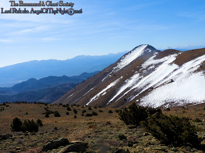 aimlessly these hills above town. Mount Davidson and Ophir Hill are the two highest peaks found within the Virginia Range but also they overshadow Virginia City below. While one is perhaps going out to dinner, chasing the paranormal, drinking a beer, off roading, hiking or merely sitting on your front porch everyone is able to see the giant V on the side of Mount Davidson which at night is lit up. Not much has changed prominent historical figures like Mark Twain mention this mountain in his book "Roughing It" for example. But back in the day when the first settlers came to the region they called this Sun Peak. Ophir Hill just below it resides on the other side of the saddle of Mount Davidson so really the two are one of the same considering their relevant geology that overshadow the town below. The entire reasoning behind this project is so I could put the area into perspective for our viewers. Standing at the top of the Virginia Range let alone Mount Davidson I can see multiple paranormal and haunted locations our society has done research into. Its amazing to stand above Virginia City and see over forty locations that include peaks you have summated, mills, mines and historic sites that you been to. Without a doubt despite this factor atop of the Virginia Range is truly like being in another world that so very few get to see. This world contains wild horses, high desert forest, snowcapped peaks, pristine views of multiple valleys and cities. As a matter in fact on a clear day you can see for at least 200 miles. I enjoy adding projects like this to our website for many good reasons one of them is it gets you the viewer to get off your couch and actually see some of the locations we have done. Nobody would know about certain places if we did not share our work or the beauty of what we do. I spend allot of time in Virginia City I guess you can say in a sense that is my stomping grounds but what I do not see there is people who explore above town as a majority of people are often glued to tourism when in fact little do they know the wilderness awaits them just a short hike or jeep road above them. Mount Davidson standing at 7,864' is the highest point in Storey County Nevada it stands perched directly above Virginia City Nevada. They may have called it Sun Peak over a century ago because the sun does set directly over it at dusk. This is the highest mountain in the Virginia Range. As a matter in fact if you stand on top of it you will get 360 degree views of the entire range. On a clear day one can see Reno, Carson City, Dayton, Gold Hill, Silver City, Mound House, Washoe City and Sparks Nevada. Their are also great views of Eagle Valley, Washoe Valley, Pine Nut Mountains, Stillwater Mountains, Tule Peak, Jobs Peak, Genoa Peak, Hobart Peak, Carson Sink, Dayton Valley, Washoe Lake, various Peaks of the High Sierras, Sugarloaf Mountain, Great Basin views and many other numerous landmarks. Surrounding Mt Davidson are smaller peaks such as Ophir Hill and Mount Bullion which can all be accessed close by. Back in the day Ophir Hill, Mount Bullion and Davidson were sites of heavy mining. Even today if you hike around you will find some collapsed mine shafts, dump piles and a few fenced off tunnels. Really that is all remains of the intense mining that once transpired near these peaks and within the canyons which surround them. But at one time stamp mills, miners, mines, shafts and private cabins filled these hillsides. As a matter in fact some of the shafts near the peak of Mount Davidson ran for 2000' underground which connected with tunnels systems that the miners could take under the city to get to where they had to go. A good example of miners using such shafts to descend under the city would be the Chinese who were often heavily discriminated upon. Therefore they would mine the shafts of Mount Davidson all day and by the evening rather then walk the streets which were dangerous they took a tunnel which came out in China Town. Mark Twain who at the time worked for the Territorial Enterprise would often smoke a cigar out front and stare up at Mount Davidson. I also hear he summated it on one occasion then again many of the towns folks in the 1800's tried to make the climb to the top yearly. I cant say I blame them back then you did not have cell phones or computers it was merely you verses nature that is how the locals entertained themselves. Mark Twain noted in his book "Roughing It" that he seen a flagpole on the summit which the flag was flown every 4th of July. I believe that very same flag pole still stands on the summit today therefore it is a piece of American History worth visiting besides the stellar views. Also at the peak is a written memorial by a Virginia City fireman and a tribute to the victims of 911. This is a rewarding journey only a true Nevadan could really understand the value of this mountain range which extends 30 miles from north to south and nearly 40 miles East to West. It is like no mountain range in Nevada due to its size alone while most Nevada ranges have a distinct north-south running ridge the Virginia Range has no single ridge and generally runs southwest-northeast. The Virginia Range is often confused with the Virginia Mountains which are located north of the Pah Pah Range and 25 miles north of the Virginia Range which more then often folks get the two confused. The southeast part of the range however which is mostly north of US Highway 50 is considered part of the Flowery Range a sub range connected to the Virginia Range. Its highest summits can be seen from Reno and even Carson City. As a matter in fact Mount Davidson, Ophir Hill and Mount Bullion all can be seen from nearby towns below. All three of the ranges tallest peaks we journeyed on all found within this addition on our website. I remember hearing years ago before people begin moving up into Washoe Valley that bigfoot sightings were occurring in the region back in the day. Of course many years ago th