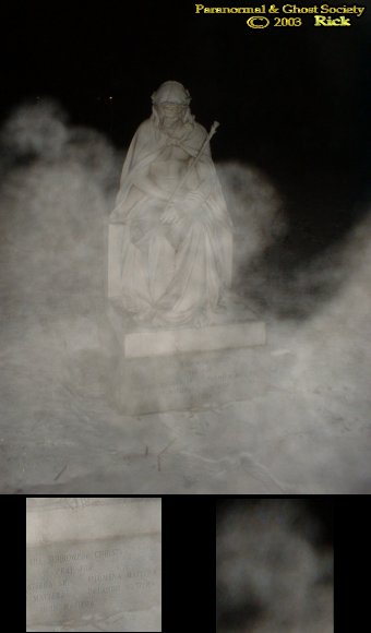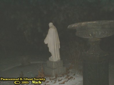 This place certainly looks a lot different at night that I will tell you. As we approached it the statues looked like they watched me of course they are life like so my thoughts were it may be hard to tell apart the ghost from the statues. So keeping an eye on movement here was essential. It did not taken long for the ghost here to be active first 2 photos revealed ghostly images. Although I decided not to get greedy it seemed like the