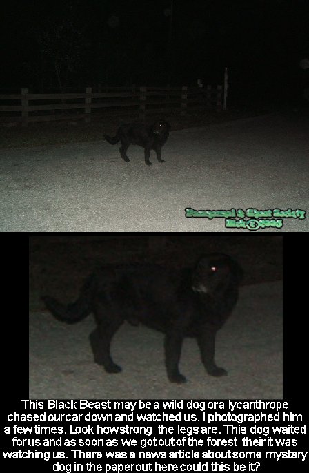 Subj: [ParanormalGhostSociety] Last Night's Investigation Report Date: 3/6/2005 2:54:29 PM Eastern Standard Time From: AngelOfThyNight@aol.com To: ParanormalBuffalo@yahoogroups.com, paranormalghostsociety@yahoogroups.com, Paranormalflorida@yahoogroups.com, ParanormalGhostSociety@groups.msn.com Seminole State Forest This was a last minute investigation planned and it was on our way home so I figured a woods hike would do us some good. We drove down this woodsy road leading to an open parking area and trailhead. The trailhead had some pamphlets on the trails and area. There really is not alot of history to the area accept that it at one time was home to the Seminole Indians. As you know Indian land is strange with all the myths, ghost lights, tales and creatures foretold. We walked up a dirt road which the further we went the more woodsy it became. Our original plane was to take the dirt road to a horse trail which goes in a loop and comes back out. But with twenty one miles of horse trails it was obvious that this forest was fairly large and anything could hide back in here. We walked a long ways up the dirt road and James kept hearing something following us. At first I paid no mind to the movement but after awhile whatever it was made itself obvious. We would take a few steps then stop and whatever this was happened to stop when we did. We kept walking tried to just ignore the fact we were being followed till we came out to a giant clearing. There was a field to the left and to the right woods. We stayed on this dirt road until we came to a curved trail which we assumed was our loop. The problem is that on the trailhead they have different trails for different routes and unfortunately we noticed that the trail was poorly labeled so we went on a hunch. We took this horse trail for quite sometime perhaps a mile deep into the woods as it curved and twisted. The woods were extremely cold. I could not even feel out cold spots anymore it was just the whole entire woods. After walking for quite sometime we started to realize we were going deeper into the woods and the trail was not looping around. We sat down dead center of the trail and took a break. We were all very tired out and I studied the map I had of the area. The map showed some camps up ahead but a couple more miles so we decided to head on back before we got in too deep. We heard this weird bird like sounds it was a sound I could not identify which really intensified the investigation. I do not know if it was reptile or prehistoric sounding but it was a pretty big bird type of sound. We hiked back out to the dirt road and we had woods on both sides. We stood still because we thought we heard some sort of movement so we did not even flinch. After sitting there quietly we heard a giant branch snap. Something very heavy stepped down to hard and you could heard the wood just snap. I estimated the sound and snap to be something about four hundred pounds minimum to cause such a loud snap. Whatever it was had to be watching us standing still. There was no other snaps just one so we know it was not a deer or bear. But it was very loud and crisp. Something was out in these woods at this point and it was intelligent. We went down the woodsy dirt road came out to a clearing. The fog was rolling in so bad we could hardly even see anymore and we had over a mile hike back to the car. We kept walking along the dirt road as ecosystems were change from pine, to cedar, to empty fields. As we made our way back James looked back and seen something all black, bipedal, and standing behind us on the road. It was staring us down. It was right in the middle of the road just watching us. I did not see it but James said he looked the first time seen it turned his head to talk to us turned back and it was gone. What amazed us is how stealthy it was being and how fast it was able to appear an disappear. Based on James description of the creature I believe we had a skunk ape encounter here and I believe it knew we were their as well as not supposed to be hiking at that hour of the night. We made our way back to the car and got in. As I started it up to my left I thought I seen a black bear lumbering around when it turned out to be a dog. It was slowly following my car staring at me. The eyes on the dog were almost scary it had a real cold scare like the animal we seen was either ghostly or perhaps a shape shifter. The dog was black but it sort of looked like a wolf. I stopped the car and the dog walked fairly close up to my car staring me down. I had Aaron take a photo of the forest sign and looked to my left again at the dog. He then crossed in front of our car looking back at Aaron. He walked down the road to the right and we looked the dog vanished. We do not know if this dog was ghostly, a shape shifter, a phantom creature but I will never forget them eyes as it stared us down then vanished. The dog appeared to be waited outside the trailhead which I thought was odd. Whatever was in these woods wanted us out and seen to it we left because even though the dog did not bark it was apparent that it followed the car out onto the main road quite odd besides that giant black creature standing on the road making sure we were leaving. Was this bigfoot or do the Seminoles have advanced knowledge's and wisdoms beyond our understanding? In conclusion to the evening we turned a poor night into some damn good investigations. We hope eventually we can return to these places perhaps to learn a little more about them. We also hope we can find the other cemeteries eventually which in my opinion is a quest in itself. We had a very productive night though between hearing the ghostly man at the movie theatre to being followed by something in Seminole State Forest. I am sure we came out of each place with some fairly decent photos as well. Peace Rick |
