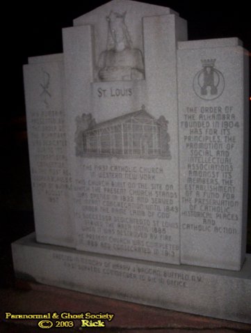Saint Louis Church is over 150 years old and was erected in 1829, when Louis Stephen Le Couteu1x de Chaumont, a Buffalo resident of Noble French ancestry, deeded the plot of land to build this monolithic structure. The church was constructed from Lumber which was used from the forest that covered all of Delevan Ave which no longer exist. In 1832 the church was complete and named the Lamb Of God Church. In 1843 the church was rebuilt and instead of lumber brick was used giving it a more stable look and feel. In 1885 the musical hall across the street was on fire which spread to the church. The church burned down and all the local parishioners who attended here used a 3rd church for 4 years till reconstruction and remodeling could be finished. In 1889 the Feast Of St Louis took place this was the first service to take place in the newly remodeled and reconstructed church since the fire. Which its name was born called Saint Louis Church "Mother Church of the Diocese of Buffalo."The church was composed of Medina Red Sandstone and is was constructed to look gothic by architects Schickel & Ditmar, The church is almost 250 feet in length and some of the roofs go as high as a little over 100 feet. There are 3 towers on the roof two of them are 128 feet in height and the Chief tower one of the most elegant in the country is a enormous 245 feet in height and can be seen from anywhere in downtown Buffalo just about. The giant clock on the church was a gift with was placed on one of the towers now called Seth Thomas Tower came from Hon. Elbridge G. Spaulding, the "Father of the Greenback," as a gift to the church as he took residence across the street. Now we get to the inside of the church which has over 250 pews, can seat almost 2000 people and has the very beautiful Kimball Organ. There are also Statues of St Anthony and Francis which were carved out of a single piece of wood. There is a high altar here which contains a life like statue of St Louis. The high altar, St. Joseph and Seven Dolors altars were made out of marble from the Lauz Marble gifts from Miss Emma Lang. The Sacred Heart Altar was the gift of Gerhard Lang, and the Altar of the Blessed Mother a gift of Chas. and Suzanne Lautz. So as you can see alot of the beautiful altars and such were gifts from prominent and generous people. Also in 1903 a pulpit was carved with the 4 evangelists and statues of the doctors of the church that served in the 1800s. Lastly we cannot forget the 2 large beautiful mosaics which are on the left and right sides of the Tabernacle. Now we get to the stained glass over the high altar consist 7 giant panels each one tells a story about St Louis the IX of France. It is said he held the crown of thorns which was put on on the head of Jesus during the crucifixion. St Louis built the Sainte Chapell in France which housed the Crown Of Thorns. He led the 7th crusade and died in 1270. The remaining windows in the church contain biblical themes of the saints and bible. The 7 long windows were made in Germany. The rest of the windows which are on the sides of the church were made by Riester & Frohe in Buffalo NY itself who also made windows for other churches in the area. All the windows were donations by local Parishioners. In addition to that St Louis Started the first parochial school in the Western NY Regions in the 1830s. The school took place in the church itself till a building was erected next to it in 1850. Many Buffalo locals attended the school till in 1959 it closed down perhaps due to the lack of funding and many public schools in the area which were becoming more popular. In 1986 the building was demolished but this did at one time remain the oldest educational institute in NY state. So as you can see another church in the Buffalo area with a lot of history. Also one of the larger ones in the area. This is why we chose to investigate as rod iron surrounds this castle it really is amazing to have both the history and the ghost that surround this place. This church also has a basement as most older churches do. As you walk along the church you will see many stair wells, or iron fences that surround the basement windows. This seems to be where a lot of the ghost hide in areas that are darker just beyond the shadows. Although I cannot say the ghost here are shy because two of my ghostly photos taken here were directly in front of the church with it being very well lit. But what I wanted to do is take a few photos again not be greedy but enough to show you the ghost that haunt this church. Are the ghost friendly? You bet when you can ask a ghost to stand somewhere and it does then it means they have a conscious of what they are doing. But the main areas that are haunted are the front entrance, basement stairs and inlets. From my investigation here we realized that you had to be real patient and take your time just to capture anything. For example it took a good 5 minutes before I got something at the main entrance I had to stand there and wait a little bit to capture the entities curiosity. I also walked around here a few times just to get a psychic impression of where the ghost might be. I mean when walking around it you see so much all the engravings in the church, little crosses all over the roofs that meet at points, a ladder up near the dome like roof and even a memorial next to the church one side has the memorial the other a crucifix garden. So besides this being a beautiful church the ghost of St Louis for over 150 years of history also seem to come with it. © By Rick-AngelOfThyNight Bibliography: Michael Riester on Catholic Churches Brief History of St. Louis ChurchSt. Louis' was the first congregation organized west of Rochester, and the first in the present Diocese of Buffalo. The Rev. Stephan Badin sojourned in Buffalo six weeks with Mr. Louis Lecouteulx before returning to his own mission in Kentucky. This was in the winter of 1828 - 1829, and Father Badin said Mass for the Catholics several ti