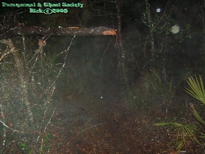 Subj: [ParanormalFlorida] Last Night's Adventure Report Date: 2/27/2005 10:41:06 PM Eastern Standard Time From: AngelOfThyNight@aol.com To: ParanormalBuffalo@yahoogroups.com, paranormalghostsociety@yahoogroups.com, Paranormalflorida@yahoogroups.com, ParanormalGhostSociety@groups.msn.com CC: rasolasascendant@hotmail.com, parapackboy@hotmail.com Stark Plantation Investigation 2 Well here we are back a second day in search of the elusive Stark Plantation. This time we were a couple miles away from Friday's first investigation. It actually is the right area we were in because today I did some further research and analyzations. But I had visited the site earlier during the day and my son told me he felt watched out there. Anyhow we parked near some train tracks and hiked up a long dirt road in the woods. We were unable to drive since the sand was to deep. We seen a sneaker in the middle of the dirt road which was not there just a few hours before I visited to scope the area out so in my opinion that kind of struck me odd. We kept walking and came out along a railroad bed and to the left was the first hiking trail I showed the team. This trail is full of weird feelings but not good ones in my opinion. It almost feels like maybe at one time a murder took place in this area or something bad occurred. We did hike up it to a fire pit and a downed tree. I felt that the trail went further and then Lee took out his blade chopping through brush and sure enough the trail continued on. As we kept walking through the narrow overgrown trail it seemed many trees blocked our path. It was hard because we had to get on our hands and knees crawling through bushes, pine trees, and tunnels of bark. We eventually came out to a more cleaner trail where less trees were down. The trail was not to bad except that we heard some strange beastly noises not to far away in the woods. It sounded like grunting but something very big. I am not sure but to me its possible it was a bigfoot. I know that these woods a few miles away will lead you into skunk ape territory so its not impossible that something was here with us. We hiked for quite a ways and it took awhile this was a very slow moving type of trail and as we got farther away I no longer heard any strange noises. Eventually the trail took us to a giant open field there was some sort of relief and then we started to journey across the giant grassy field. We came across another trail which had many no trespassing signs and barbed wire across it to keep others out. On a psychic level I felt we were real close to this mansion in the woods. Someone went through alot of trouble to not only keep people out but to make it clear that they were protecting something back here. We took the trail it was fairly straight and cleaned up so no problems walking throughout it till we came up to a larger open area. The open area had three trails the left, right and of course the middle trail which was extremely overgrown. I went off on my own to the right where there was some barbed wire and felt an entity coming down the trail. I felt it was a younger ghostly lady trying to tell me something. I could sense it getting colder and colder. From the photos it appears to be a lady and you can see her energy approaching me in the few photos taken. So we decided to take the trail where there was alot of ghostly energy on. That trail we did take and it led us to the railroad bed just further down from where we parked. The guys took a break and I took some more photos. It seemed we were followed the whole way. We then backtracked down the trail and took the middle path. The path was very overgrown and only wide enough for us to walk in single file. This path was very unfriendly and I did not feel anything ghostly or beastly here. But we took this trail for over an hour and half probably climbing on the ground, twisting and turning, climbing over trees down. At this point our lights were all dimming and the area was so over grown I could barely even see the sky. We were so deep in the woods there was no signs anybody had been back here for years. There was no litter, no quad tracks, no human tracks either. At times down the path we would see a few smaller more narrow paths where they led I do not know. The night was becoming very tiresome lets put it this way we had been hiking for three hours and that whole time rain had been coming down steadily. So at this point all of us were very muddy and dripping wet. This adventure we were on was more then an investigation but it was a quest. It was more about pride and strength pushing on to find this hidden mansion in the woods. Each step we took was a step closer to perhaps finding a paranormal jewel. Eventually the trail ended at this wall of brush that was twelve feet high. Even studying Ariel maps from a couple thousand feet up this wall is very visible for some reason. The land sunk down and Lee felt it was swamp land. By this time we had entered our third eco system from scrub, pinewoods to swampy grounds. We turned back and took another trail one that was very bandwagon like with higher dirt walls. At this point that trail dead ended us too so we took another route off the trail. That trail was quite rough lots of twist and turns. Even going back for us would have been a couple hour trip so we took this new way hoping it would take us to an area which would give us some relief. Eventually we came out by the railroad bed as I climbed out of some bushes. We were really out in the middle of nowhere there was no houses just train tracks, giant sand walls, and woods. We had a choice which was walk down the rail bed which would lead us to a state park or back to the car. After getting our bearing we made our way back down the rail bed. At this time at least a few freight trains had passed throughout the night. Its amazing how you do not see or hear them till they are right up on you. We then came across an area near the woods with kids toys and other it