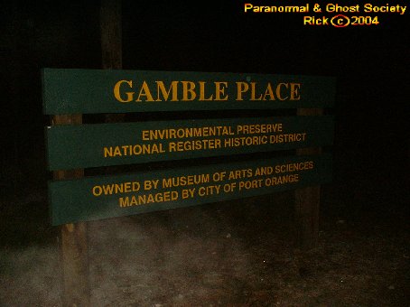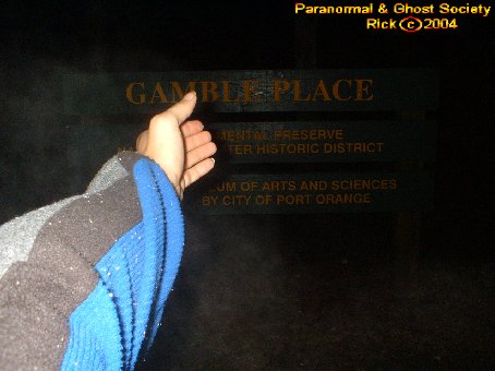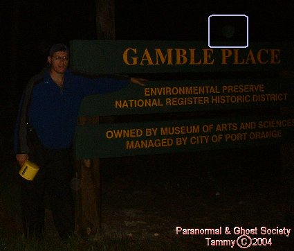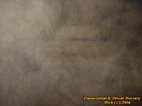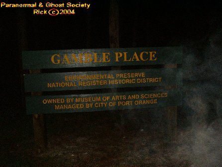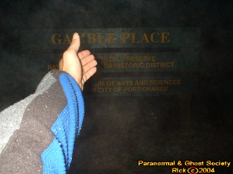 We started our long walk back to the car down the dirt road again hearing the same gnawing sounds. We did not run into any big cats here perhaps we are lucky we did not since this area is quite secluded. I then took some photos of the front side and reached my hand out to one of the entities I could feel it touch my hand. Eventually I felt it go behind me and Tammy felt it just standing there as well. For a while I worked with the ghost surrounding the sign to the Gamble Place. I wanted to bring you photos of an entity near the sign it just helps perhaps to show how haunted this place was so we did spent a lot of time at the main gates.