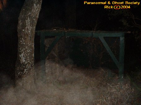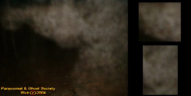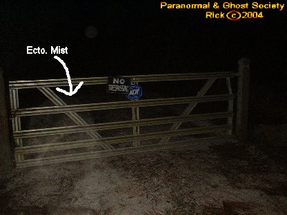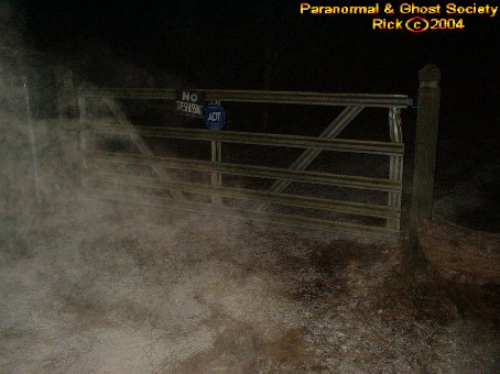 We ended up backtracking and came to a gate near the road with a dirt road leading somewhere in the heart of the woods. Tammy and I walked it and it was very very cold. I was freezing to death and right away I caught something in my flash it looked like a giant face coming right at us in the brief view of it.