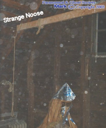 there was a room with a noose but not big enough for a human maybe a cat or smaller animal and it was tied perfectly to a beam and hanging. This room made me feel like this was where the bad boys play. We did open the hatch to the attic the floor was bad but we checked upstairs the attic I did actually sense something and I believe I got a photo of whatever it is but its transparent and human shaped so probably or maybe the ghost of a child. As we were on the second floor I heard a bang on the lower floor maybe a piece of