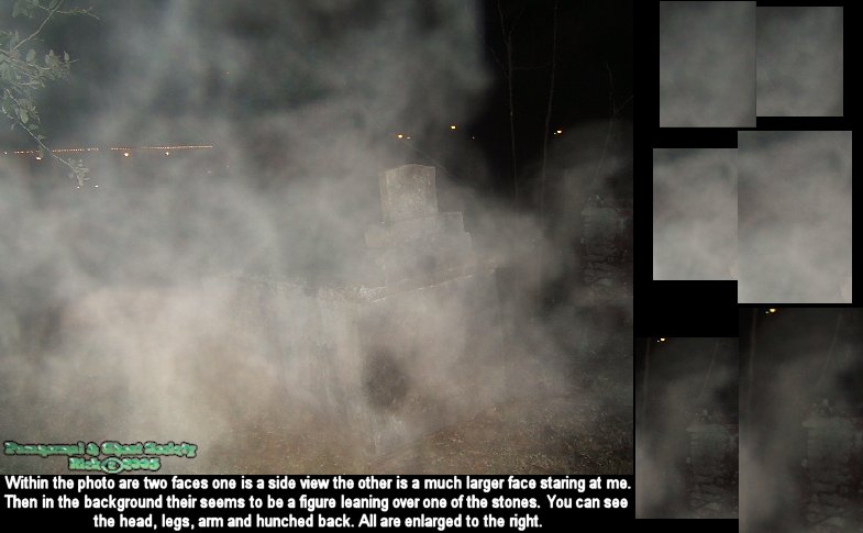 There was an overwhelming feeling here and I will tell you this I was not alone. The cemetery was very active not alot of noise or anything like that. But when my flash went off I must had seen multiple apparitions moving around the cemetery. I really started to get uncomfortable here but what is odd is only parts of the cemetery have a real unsettling feeling.