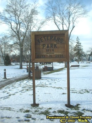 I waited to investigate this place till Christmas since the town decorates the trees, gazebo and other areas of the park. Across the street is an old cannon a reminder that the war took place, a veterans church, and even a veterans building where they can gather for various activities. In the park itself is 2 boulders each one contains names who perished locally in the world wards. The ghost at the park move extremely fast. It is almost impossible to capture the entities unless you are very focused or you are fast with a camera. By studying the photos I can clearly see around 4-5 different ghost that haunt the park. Are they the veterans of WWI and II? I do not know after all the area is very old lots of century old homes even Al Capone use to visit near the park so its a old area with alot of history. If I were to visit the park without doing a paranormal investigation it would be to sit on one of the benches and read a book or even take your sweetheart and just look at the stars that is the type of park this is. The unseen here is watching as no matter how peaceful it is this place is never lonely. © By