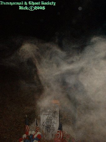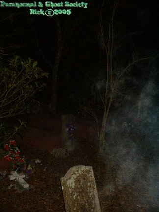 We drove up the dirt road and parked right away getting out you could feel alot of energy in the air. The fog near the cemetery was rolling in very quick starting to consume the entire cemetery. Now keep in mind fog looks like 1000s of orbs so do not confuse fog with