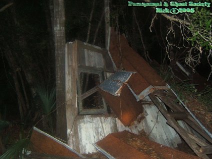 The witches house near a swamp and on a woodsy hill. The area is very old and home to the Timucuan Indians for many centuries until some residential areas were built up along this plantation land. This house may be one of the oldest however in the area or at least what is left of it. Rumor has it that people who go up here often seen a phantom house or perhaps an apparition here. Since the area is very overgrown and well hidden the mind back here wanders. We sensed alot of energy back here but it did not seem to contain much form like most ghost. It just was more of a natural type of energy or possibly residual. When walking around the area you will find things like bottles, flower pots, and debris. Because of all the kids going up here to hang it was probably called the Witches House cause some claim that they seen the house totally rebuilt, standing and apparently well alive when in fact the house is suppose to be a pile of rubble. The house remains a mystery as rumors are that it burned down to the ground yet when we visited their is no signs of charring in the wood. It looks more like the house collapsed on itself or as if some sort of storm blew it to pieces. Even the sheds air vents were exploded and shredded outwards very similar to how the house was. So what really happened here? Is it the land that caused the rise and fall of this house? Did something wicked occur here? Or is the house itself cursed? You decide! © By Rick-AngelOfThyNight