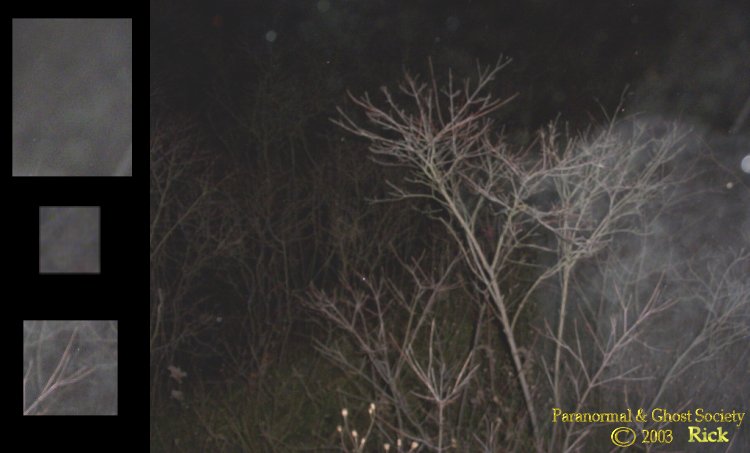 I do have to agree it was a very strong presence. We then hiked up the hill and along a very wooded path filled with brush. I could feel something the deeper we went in and sure enough I captured a few children apparitions back on the path. Some of the photos back here I caught are beautiful and I did show them to the group so they could see the type of ghost that haunt this property. After that it was all paranormal activity from my first apparition. Noises, strange sounds, I thought a few times I seen figures just standing there watching me.