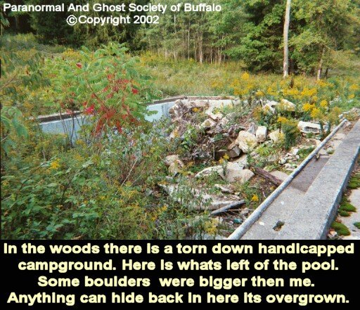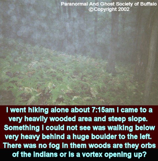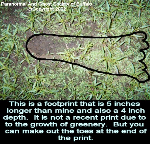 AngelOfThyNight@aol.com All i must say is wow this has got to be one of our best investigations. I would like to thank Dr Vig and his wife, as well as Jim his wife and all the others who were hospitable to Jeff and i arrival up in the pa area to investigate. I really must say it was a fun camping trip to get out of town go hiking, exploring and eat dinner at a campfire ect. I am sure if possible Jeff and i and hopefully i can find others who will go or make it possible to go in the next couple weeks again. Not just because i love it up there but ill leave it at this that there is something up there NO DOUBT at all. The area we went to is the Allegheny forest from what i read it can go for over 100 miles of streams, lake, creeks, rock formations, woods, hills, valleys and mountains with miles of trails ect. The area we went to was Kinzua reservoir just about 10 miles from the damn. From what i notice there is many roads some dirt roads you can take and just park and hike up in the woods pitch a tent and just camp but we found a nice open area where you can see the stars along the woods. Jeff and i set up a perimeter around the campground with fishing line and bells it seemed to work good although later in the evening i found it on the ground in some spots like something pushed it down and we had it fairly high. Our first little car and hike trip was up to the handicap campground its all torn down quite spook i'm sure there is some ghostly activity up there at night i can sense it all around me that's the thing. very creepy little road back there all the cabins being torn down, afterwards we went to an area of river that is driving during this time of year and you can walk across but its soft so we checked for bigfoot prints yeah we seen alot of prints from fishermen ect but one set of prints we did find did stick out. They were EXTREMELY larger then mine 4-6 inches embedded in the ground, barefoot because the toe markings and the span apart each one was over 6 feet and me being 6'2 couldn't product that if you sink in 6 inches to pull each foot out and do that span is impossible even for a guy of my might so those tracks i believe were real. We went back to home base ate some chicken and other treats then we headed out to an area off the road which is Indian burial ground going back in the woods at night was my first experience in awhile and we found the area of the vortex although not seeing nothing it didn't feel right there and our walking talkies did lose connection on 3 occasions where it was dead even standing 10 feet away pretty eerie to think about maybe entering into a alternate reality. We did head back and when we were about ready about 3-5 miles away i heard screams maybe human but they were long and had to be loud because of the echo we received back there was about 5 of them a few seconds apart. We managed to get back and find an area which may have been possibly haunted just something circling around us you could hear the movement. we got to the road and went a couple miles up it to a place with huge rock formations, a very foreboding stairwell near the look out of the lake, mountain and full moon. We found possible cave entrances in the rocks making our way up we found a huge rock high up and sat on it and all of sudden hear a whew sound over and over coming from the canyon below then next ya know the fog over the lake consumed us in 3 minutes tops we rushed through the forest but it got thicker an thicker and of course we got into the car and left to go to another site. We ended up going near a site where there is some locked up cave or missile silo and near an area where there is a nessie like lake monster being reported or seen you can hear the rushing water and its fairly quiet and of course behold getting out of our vehicle we hear a scream very high pitch very long like a baby but it wasn't it was something with a very big chest to make a sound like this and it was pretty close and there was a smell in the area i cannot explain like we were being watched after awhile we left the area got back to camp and i was told before hand that this area has many other strange things alot of ufos in the lake, above the lake, in the sky, you got many other strange happenings to like men who will go off hunting get lost in a pink fog or where things aren't what they seem and you get lost. I was also told that many other creatures have been seen a black doe, a panther possibly, now coyotes, and of course from what i am hearing from drvig is that there is something else besides bigfoot and although it seems terrifying i want to find this thing. Its suppose to be fast, walks on 2 legs and one night i guess it tore a deer apart limb from limb and supposingly is nothing human but something much worst then bigfoot up in them woods and i guess makes a whew bird like sound which we did hear on occasion so maybe that was it? But maybe it comes from the vortex or maybe the strange men who tell you to get out of there know something we do not. Anyhow later after warming up by the campfire we went to a place called jakes rock very interesting large boulders 12 feet up you can climb and lay on in the woods we went to the overlook walked around got back to the road and distinctly i heard a ROAR something like you would hear in my bigfoot wav recorded by other scientist in Cali. It was long loud and i could not duplicate then the fog rolled in down this road we hunt out and and then movement all around us then the fog left and the movement was gone. We went back up to camp again and of course everybody went to sleep i ended up throwing a banana and some chicken 100 feet out past the perimeter i heard something moving around and believe me it was big alot of loud snapping of bark, trees ect it seemed to startle when i ran with my flashlight towards the area i heard sounds or facing that way like it did not want to be seen. i know the creature is hungry i mean i don't sense harm from it but its cur